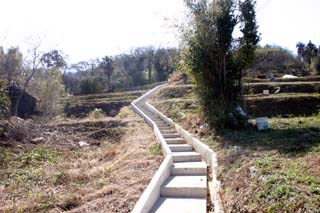![]() コンクリートの登り階段が、畑の中をずっと続いています。 |