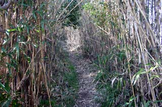 ![]() コンクリートの階段が終わると、笹林の中を通ったり… |