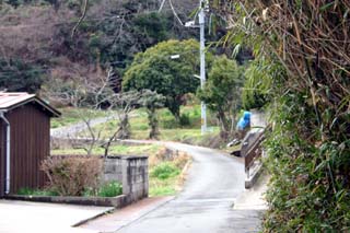 ![]() 萬福寺から赤碕小学校方面に少し歩きます。 ルート入り口の目印は…。 |