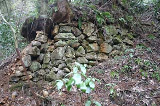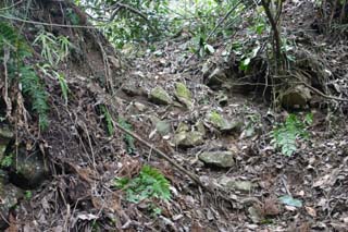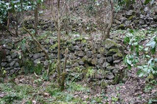 ![]() 沢が流れ出ている坑道入口跡の上の方にも、同じような施設跡があります。 採掘用の道具を入れておくための小屋とか、そんなのかな? |