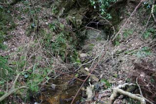![]() 封鎖された坑道入口跡から、沢が流れ出ています。 坑道入口跡上部あたりはレンガではなく岩で、観察してみると面白そうですが…頭をぶつけたりしないように注意して下さいw |