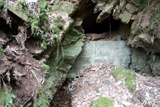 ![]() 進んで行くと、また坑道への入口跡が目に入ってきます。 雰囲気からして、本来はもっと大きいものなのでしょうね。 埋められたような感じがしますし。 |